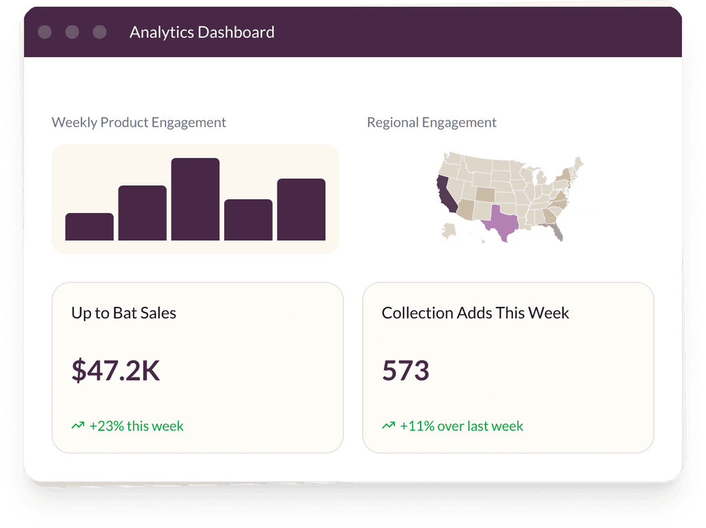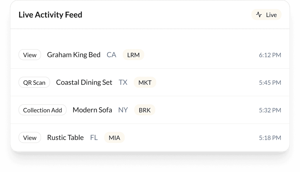 Views, QR scans, and collection adds from all end-users, delivered real-time.