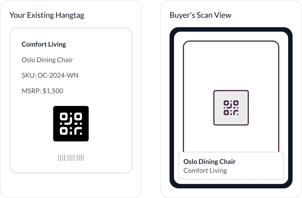 Buyers scan your existing barcodes and QR codes from hangtags to